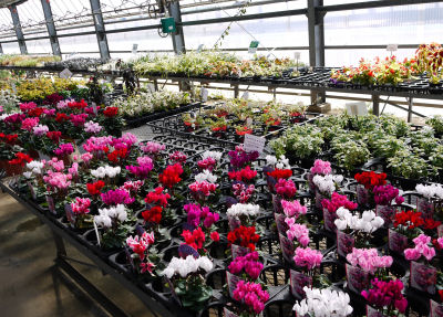 画像はハウス内のシクラメン売り場.どの株もしっかりしている.
