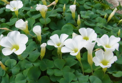 オキザリスも種類が多いが,これはシンプルな白いタイプ.
