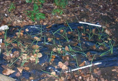 こんなんで良いのか?と思いつつも何とか作業終了.3本余ったものはシートの外に植えておいた.冬の間どれだけ育ってくれるだろうか.頂いた土壌改良剤や肥料類を使った分,昨年とどれくらい違う出来になるのか興味津々.冬の時期様子を見られないのが残念だが来春が楽しみ.(^^)