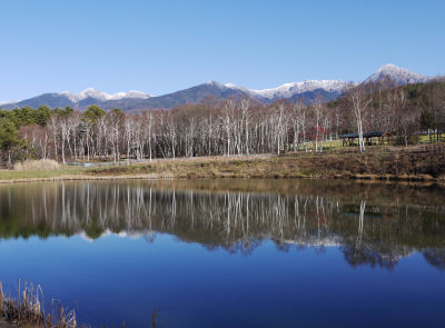 今日は快晴で午後から原村自然文化園へ行った際,まだ雪が残っていたので手前の駐車場にて撮影.手前は「まるやち池」.