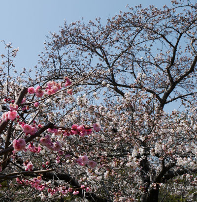 こんなコラボは今まで見たことが無かった・低温の日々が続き,梅の開花が遅れたのが効いているのだろう.桜も開花はゆっくり.ただ咲き始めるとスピードが加速する.
