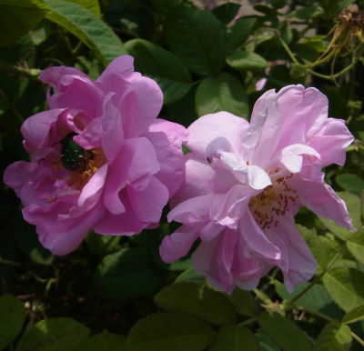画像はダマスクローズ・コーナーで咲いていたもの.ダマスクローズの香りを嗅いだ途端,あぁ懐かしい香り…ローズ・オットーの香り.近所にケンティフォリアのコーナーもあり,香りの嗅ぎ比べが出来た.やっぱりダマスクの方が濃厚.