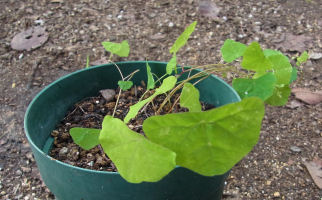 これはアヤシイ…と掘ってみたらやはり発根していた.案外容易に発根するようだ.このまま置いておいたら寒さで枯れてしまうので,とりあえずポットに埋め込んだが…枯れ葉と枯れ枝の処理が面倒でどうしよう…?状態.