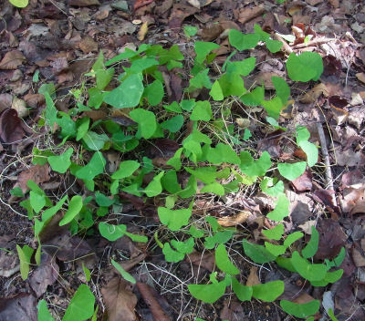 左の画像は株の整理でカットした茎と葉.そのまま一箇所にまとめて放っておいたら一月経っても青々している.