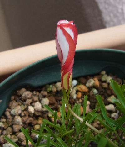 何と言っても閉じた花の紅白のカーブがユニーク.