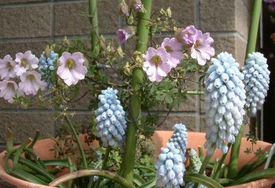 レピドムとムスカリの寄せ植え.