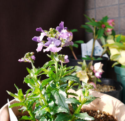 少し咲き進んで来たネメシア・メロウ・パープルホワイト.