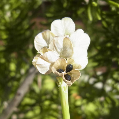 立派な黒い種.採種はしていない.このまま地面に落ちて発芽し,花が咲くようになるには何年かかるだろうか.