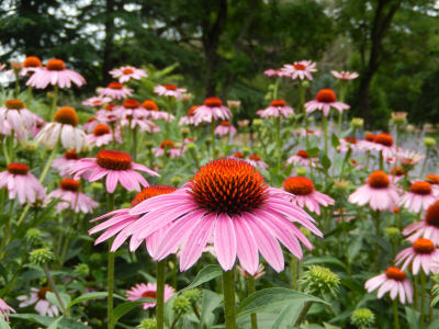 画像はエキナセア.この他,ロシアンセージやヘメロカリスが見頃だった.どうやら暑さに弱いラベンダー栽培は大変だったので諦め,暑さに強い植物に衣替えした模様.
