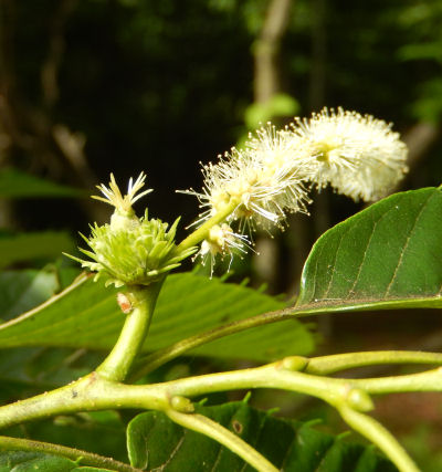 雄花のシッポは茶色くなったものがよく地面に落ちているから知っていたが,丸い雌花を見たのは初めて.10年以上見ているハズなのに気づいてないことがあるもんだ,と驚いた.