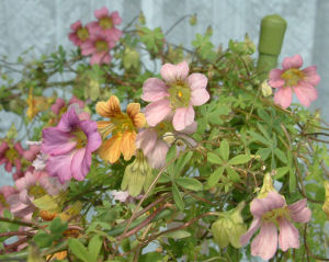 意図的に寄せ植えしようと思うなら,イモからが良いだろう.シーズン中に咲いた花色が分かっている分,合わせやすいというものだ.もっともイモたちがちゃんと発芽して,同じように成長してくれれば…の話.色違いの鉢で出来た種はさらに交雑が進んで…さて,来シーズンにはどんな花色が出てくるだろうか.