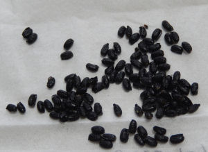 ふと見ると袋の中に黒いものが…種!