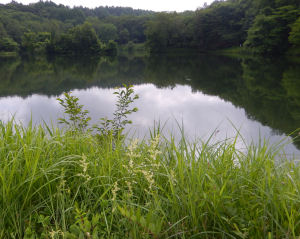 散歩道にある池のほとりに穂状の花が咲いていた.