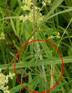「”河原”でよく見かける草で,葉は輪生して細くて”松葉”のようだから,カワラマツバと名付けられた」(野草の名前(夏),山と渓谷社)とのこと.