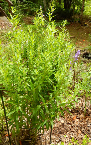 根を乾燥させた物が漢方では「黄岑(おうごん)」となる.黄金色の根らしいが,植え替えの時そんなだったかなぁ?大株になった今,掘るのは惜しい.(^^;