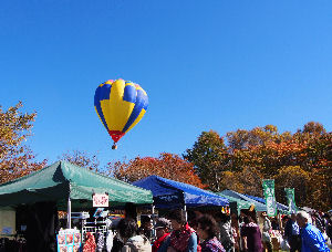 快晴のもと久しぶりの熱気球.青空に映える光景が好き.クラフト市とは異なった出展者の面々で,見ていると農産物(野菜,果物)が人気.学生たちのブースではじゃがいも詰め放題も賑わっていた.やはり食べ物に惹かれるのだなぁ.買いやすい価格,ってのもあるだろうけど.