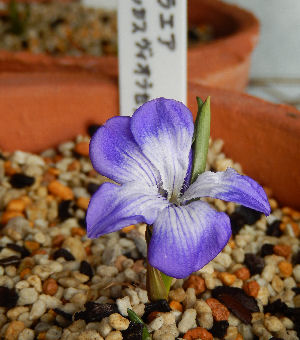 元旦は寒い日だったが午前中無加温ビニール温室のフタを開けずに置いていたら,なかばしおれた状態で開花しているのを発見,慌ててフタを半開にし水分補給.そして数時間後に撮ったのがこの画像.