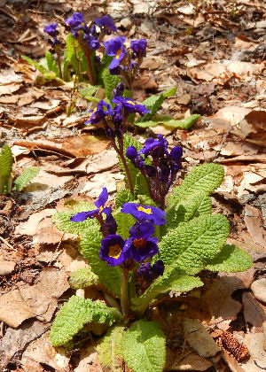 左端はこれが咲かないと春は来ない!のプリムラ・ブルガリス.次は上段と下段の花色が違うハズだったのに…というだまされた二段咲きプリムラ.そして大輪が素敵なマジカル・ブルー.こんもり大株で咲いてくれたら見事だろうけど,増やしたくて小分けにして植えたのでポツポツと咲いてる状態.