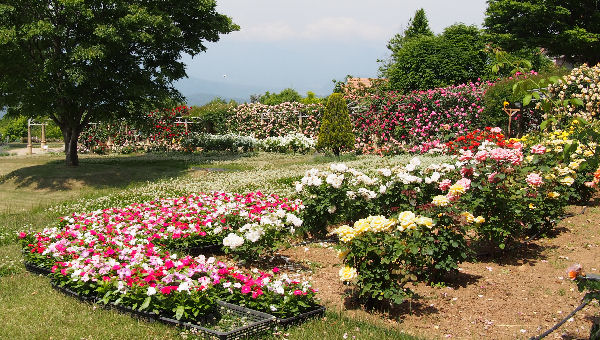 目で花を楽しみ,鼻で香りを楽しみ,山の風を肌で楽しみ,五感で楽しめるバラ園なのに非常に残念.