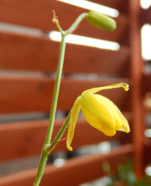 黄花のアルブカさん,フミリスと一緒に入手したもので2012年種まき,発芽はその年だったと思います.3年で開花ですね.
