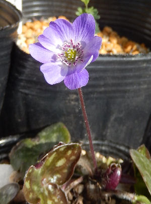 元来耐寒性の強い雪割草だが,置き場所の関係で無加温ビニール温室在住.