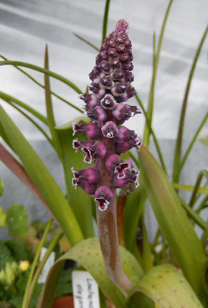 葉も斑点があってキモイが,花茎が伸びてくる様子もキモイ.