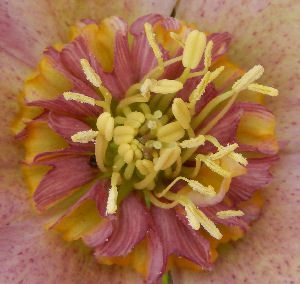お次は「ピコティセミ×ダブル」. 親の花色が分からないので結果としてどうなんだかも分からない.ともあれSD.ピンク・ミスト気味の剣弁花でこれまたネクタリーが個性的.ピンクとイエローのバイカラーになっている.花粉がたくさん出ているがセルフで受粉するかな?
