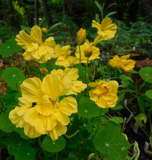 右はおなじみナスタチウム,ホワリーバード・クリーム.(T. majus 'Whirybird Cream')