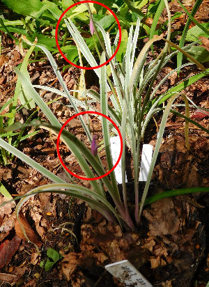 ふと耐寒性が気になり,それなら半分地植え,半分鉢上げして持って帰れば良いと思い,花の咲いた後の株を真っ二つに分けた.相変わらずニラ臭い.(^^;