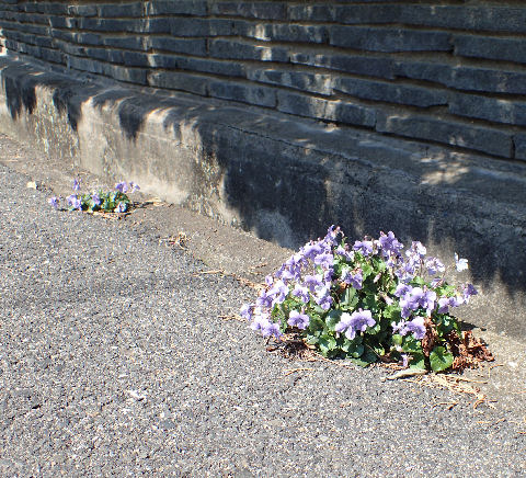 公園へ行くまでの間,アスファルトで頑張っている真正ド根性スミレ.大きな株の左右には小さな株が出てきている.そして石垣の上に植えられている花にら.だんだん増えているかも.曲がり角のお宅では,冬場花を咲かせたまま雪の下になっていたヒマラヤユキノシタがまだ頑張っており,さらに花数を増やしている.これはロングランで良いな~.(^.^)
