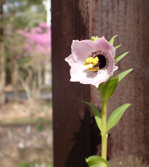 5/2から開き始め本日全開.薄いピンクの花で中央にはドット模様がある.