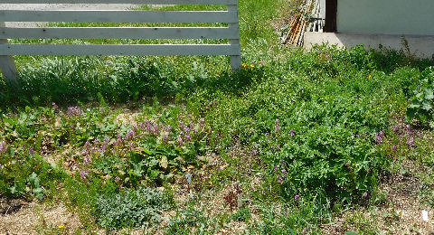 ガーデンの右奥の一角にムラサキケマンの群落.