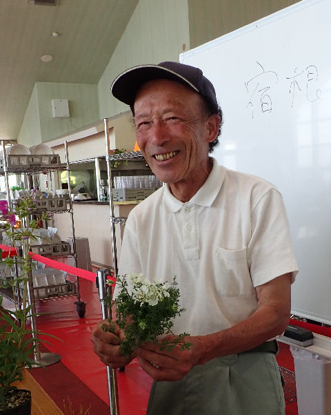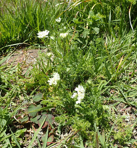 そんな中,砂利道を歩いていてふと足元に目をやると…超ミニサイズで咲いているオルラヤを発見.(画像左)これは昨日八ヶ岳ファーマーズ・マーケットのセミナーで小黒さんが紹介されていたオルラヤ仲間かな? セミナーのお題は宿根草で,宿根草にも様々なサイズがあるというお話の一部だった.(画像右)ガーデンで咲き誇るオルラヤは草丈60cmほどあるが,砂利道オルラヤは20cm足らず.何故かと言えば通り道で毎日踏まれていたから,と笑える真相.ちょうどそこへ当の小黒さん登場.挨拶した後尋ねると「そうです,コレです」とのことで納得.面白いものが見られてラッキーだった.(^o^)