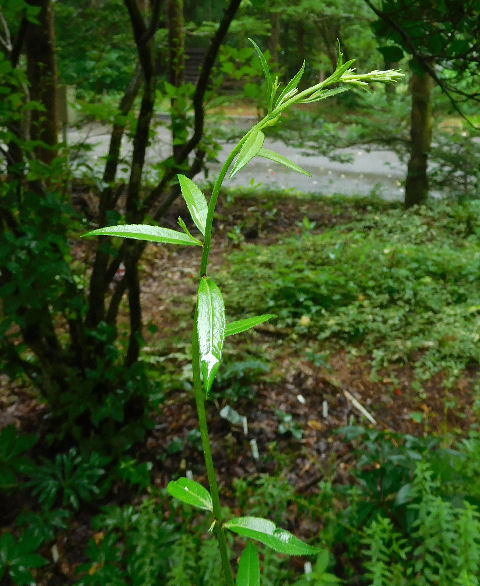 庭で心配だったのはコレ,ツリガネニンジン.1m以上に伸びていて倒れてるかと思いきや,案外平気で立っていた.ようやく花芽が分かるくらいで,花はまだ先.開花するまで無事で居てもらいたい.