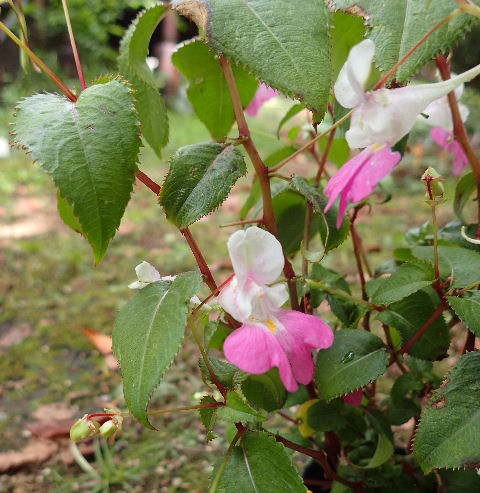 園芸店でたまたま見つけた源平ツリフネソウ.つい手が伸びた.(^^;