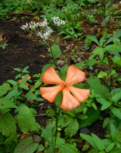 後ろに写っている花…フジバカマだと嬉しいのだけどよく分からない.葉を見ると三裂しているのでそうかな?と期待を持ってシオンの横に移植しておいた.うまく付いてくれると良いのだが.