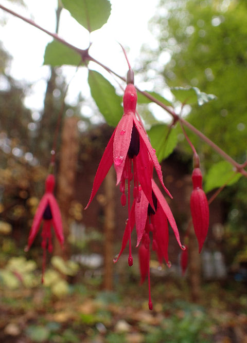 さて,画像は何度か移植されたのに耐えて第2ガーデンで開花中のフクシア・マゲラニカ.花友さんに頂いた株で丈夫さが心強い.まだパラパラと咲いているだけだが,無事越冬して来季は花友さんちみたいに爆咲きを見せてくれたら嬉しい.