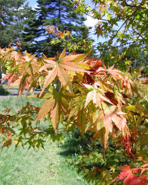 画像は蓼科湖で見つけた「小さな秋」.モミジが一部,紅葉していた.