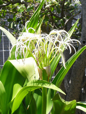 暑さに強く猛暑の中でも平気で咲いている.葉はやっぱり南国系だな,と思う.ヒガンバナ科.