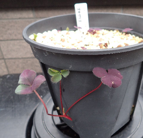 品種不明の赤葉オキザリス.北バルコニー在住.