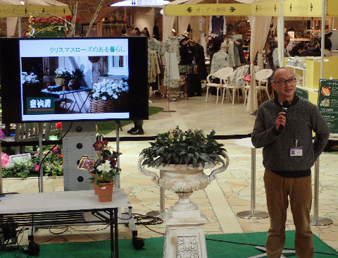 毎日,午前・午後と30分のミニ講演があり,今朝は童仙房の藤田氏が「新たなクリスマスローズの世界」と題して講演をされた.