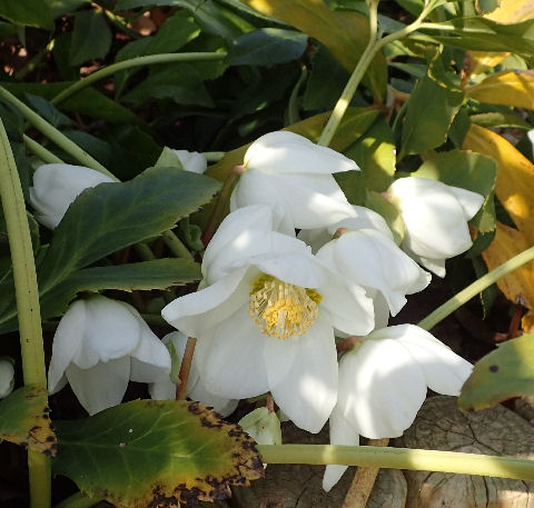 クリスマスローズはニゲルのみ,オリエンタリスはまだ花芽.原種シクラメンはまるで咲いておらず.