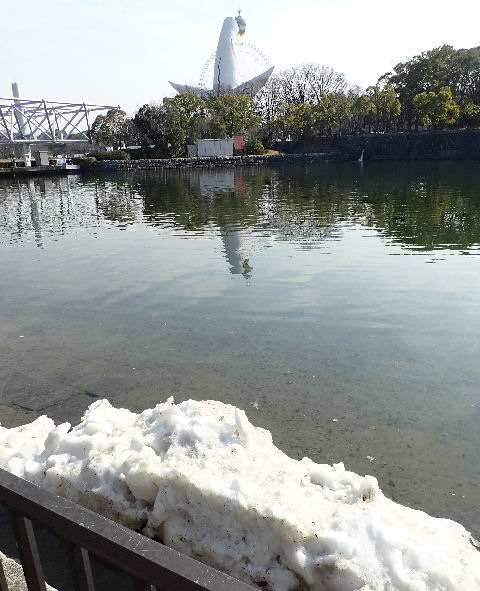 寒さを物語っているのが残雪.池も一部凍っているところがあったが,捨てられた雪が結構残っていたのにはビックリ.こんな雪の山が3つほどあった.