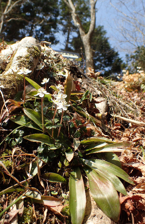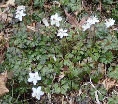 バイカオウレンは数カ所の斜面に群生していて,斜面を覆い尽くす白の小花はそれはそれは見事だった.
