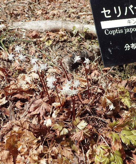 セリバオウレンの方はドカッとした株がポン,ポン,ポンとある感じだが,バイカオウレンはズラーッと群落になっている感じ.増え方も違うのかな.
