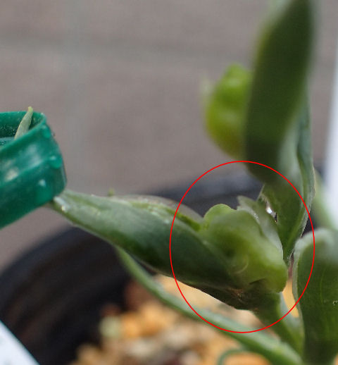 ねじりっこを付けているのはポキッと折れたようになった花茎の根元.