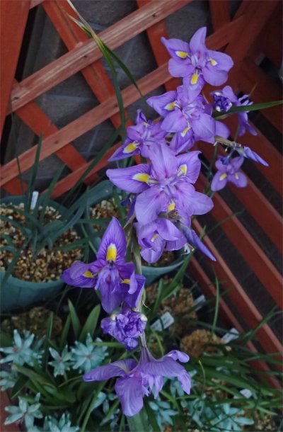 モラエアは2本の花茎があり,小さい方の花茎でも花が1つ開花.咲き癖が付いてくれるといいな.(^^)
