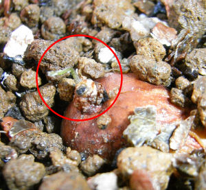 鉢の表面は乾いていても下の方はまだ湿っていたりする.水やりにも注意が必要.鉢に定植した場合は土に腐葉土分や肥料分を含む.手抜き園芸専門の私としては,イモを下の方に埋めておくと腐りやすい気がするので,できるだけ浅く植えておく.鉢の上部は乾きやすいので少しでも腐る可能性が低いかな,と思っている.