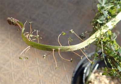 細い茎から出る葉は何とも思わないが,こんなに太い茎から葉が出る様は異様な感じでキモイ.(-_-) こんな茎から出来る花芽で花が咲いたらどんな花になるんだろう?怖い物見たさで興味津々.(^^;