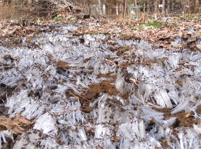 今朝の気温はマイナス4℃.4月11日に積雪25cmを記録したかと思いきや,今度はとんでもない低温.とても4月の気候とは思えない.庭はガチガチに凍っている.